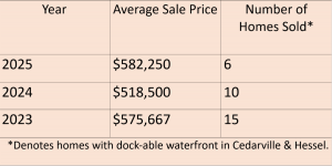 It has been a snowy start to the winter, and the winter sports enthusiasts are gearing up for a “throwback” year! Now that the dust has pretty much settled in terms of real estate sales for this year, I thought it would be interesting to see how 2025 compared to the last two years in regard to waterfront sales.